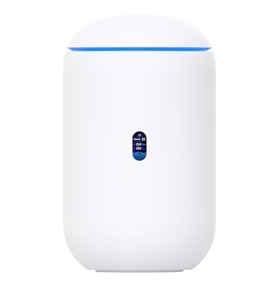 O UniFi Dream Router 7 (UDR7) é um gateway all-in-one que combina roteador, firewall, switch PoE, controlador UniFi e access point Wi-Fi 7 em um único equipamento.