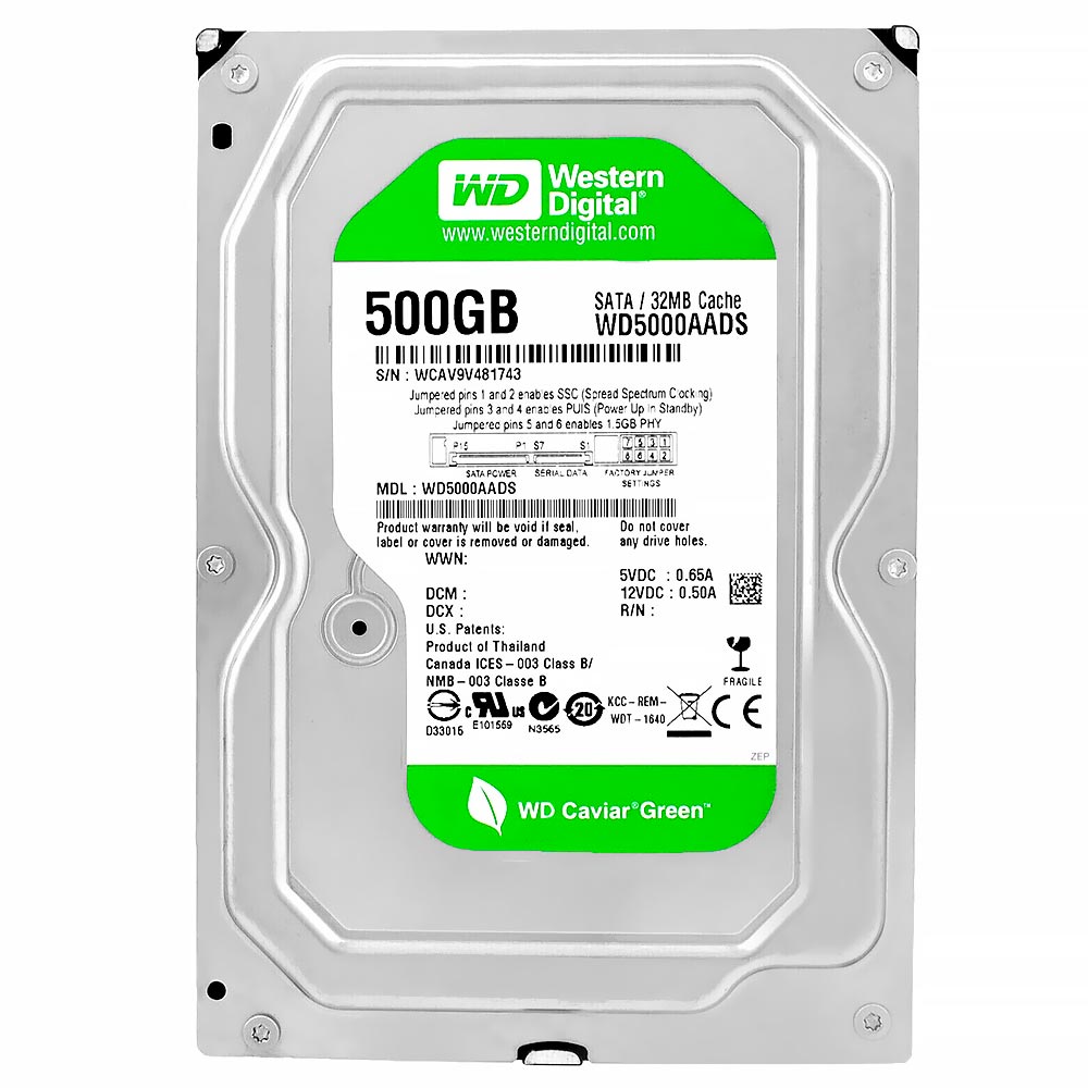 O Western Digital WD5000AADS 500GB é um disco rígido da linha Green, desenvolvido para oferecer armazenamento confiável com baixo consumo de energia.
