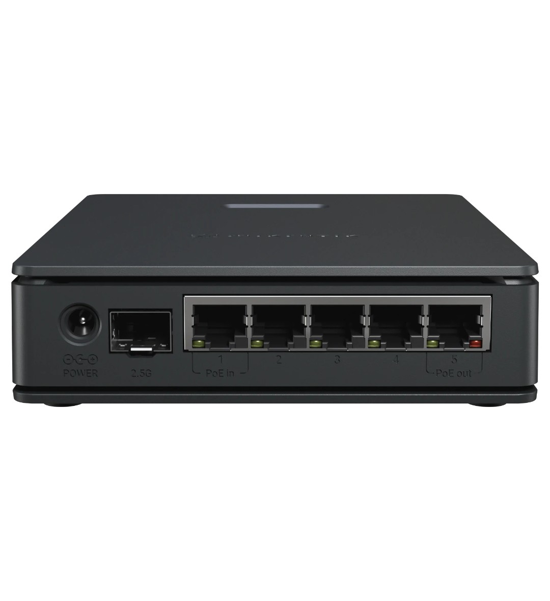 Conta com 5 portas Gigabit Ethernet, 1 porta SFP e suporte a PoE, oferecendo grande flexibilidade de conectividade.